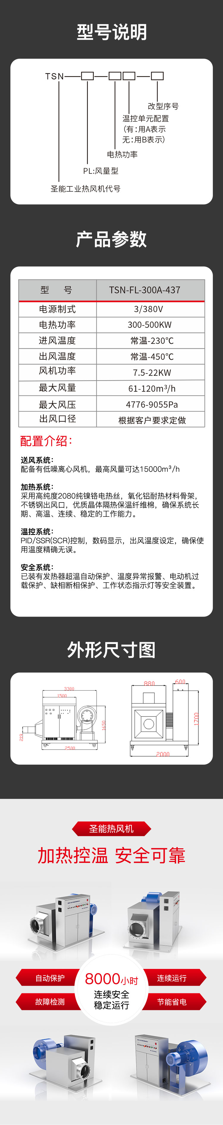 風(fēng)量型熱風(fēng)機(jī)主要由空氣加熱器和離心風(fēng)機(jī)組成。空氣加熱器加熱產(chǎn)熱散熱,由離心風(fēng)機(jī)將熱量輸出,從而調(diào)節(jié)空間溫度,風(fēng)量型熱風(fēng)機(jī)中加熱元件由2080鎳鉻絲加工成螺旋導(dǎo)管組成,從而發(fā)熱快、溫度效果好、工作風(fēng)量大壓力較低。根據(jù)使用場(chǎng)所可分為:家用風(fēng)量型熱風(fēng)機(jī)和農(nóng)業(yè)用風(fēng)量型熱風(fēng)機(jī)。從而家用和農(nóng)業(yè)用風(fēng)量型熱風(fēng)機(jī)需根據(jù)客戶使用情況來(lái)進(jìn)行風(fēng)機(jī)和加熱功率的配比,望請(qǐng)客戶采購(gòu)時(shí)將現(xiàn)場(chǎng)工況詳細(xì)說(shuō)明。